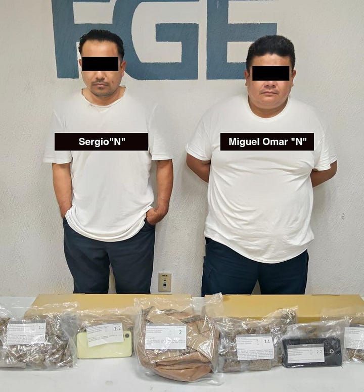 Ángel Antonio “N” y Aldo Cruz “N” ya fueron vinculados a proceso por narcomenudeo en su variante de posesión con fines de comercio. Al segundo, además, se le dictó prisión preventiva oficiosa por todo el tiempo que dure el procedimiento.