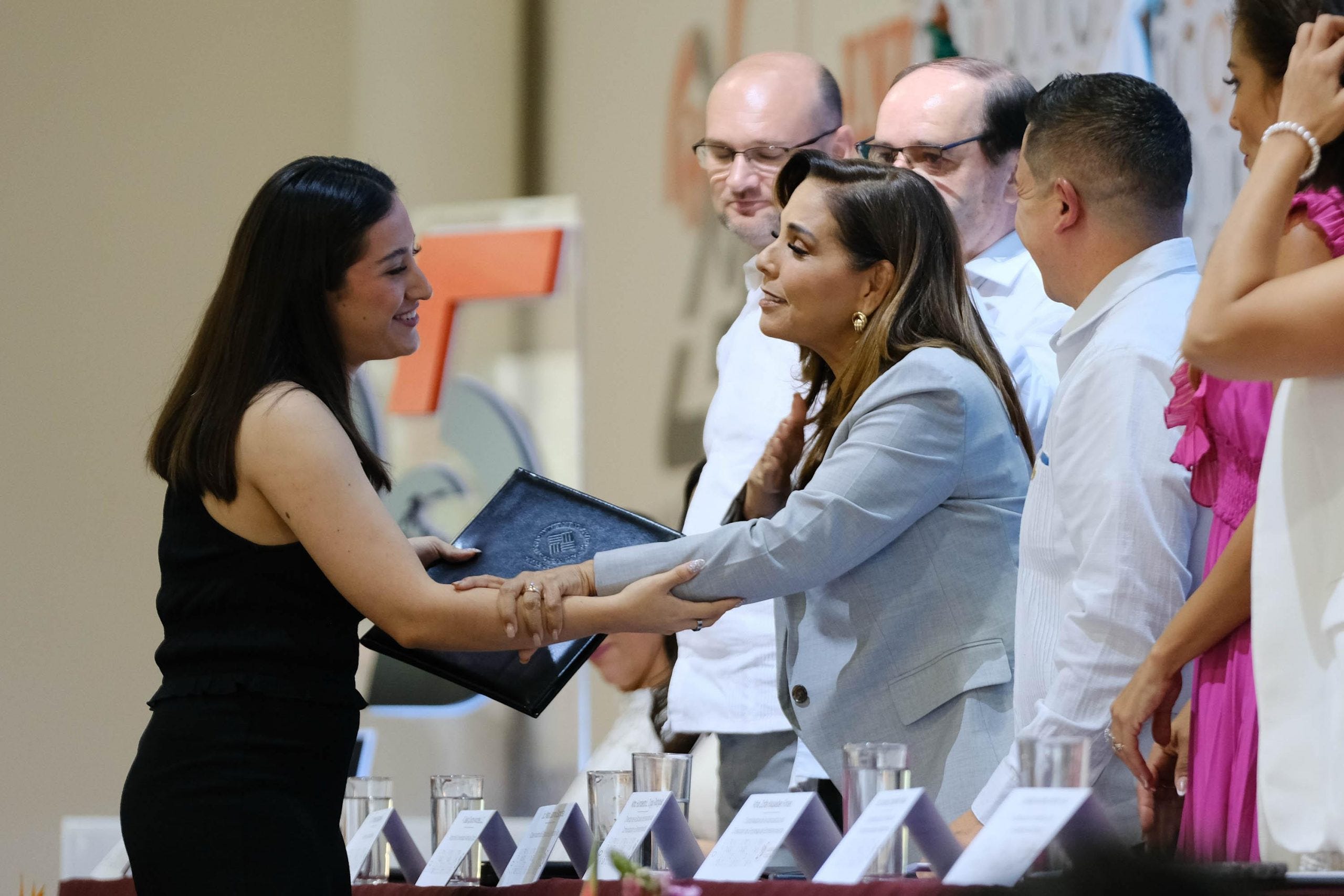Durante la ceremonia, el Rector de la Universidad, Jesús Quirce Andrés, destacó que Mara Lezama es la primera, o quizá única, egresada de la Anáhuac que ha sido electa Gobernadora de algún estado de la República.