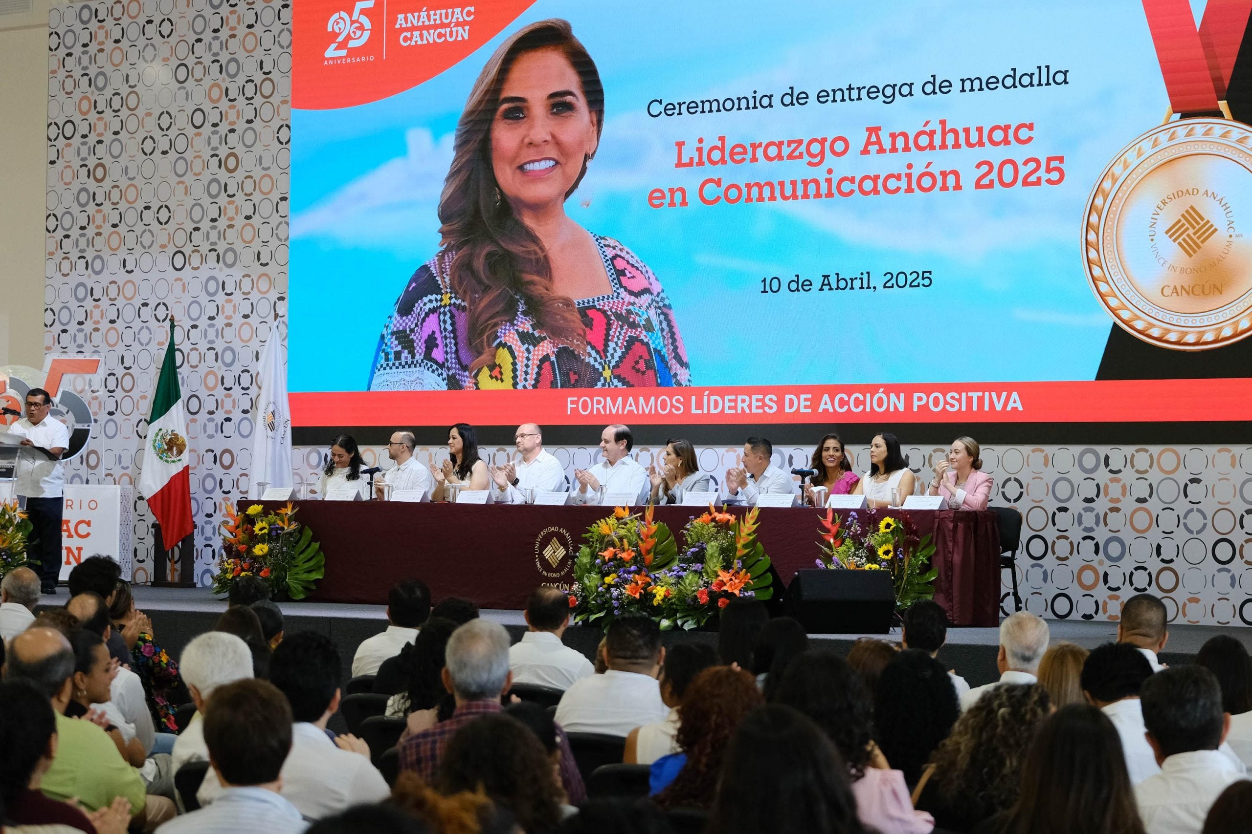Cancún.- Al recibir la medalla Liderazgo Anáhuac en Comunicación 2025 que le entregó la Universidad en el marco del 25 aniversario, la gobernadora Mara Lezama Espinosa expresó que aún cuando las herramientas hayan cambiado, la esencia de la comunicación sigue siendo la misma: comunicar con la verdad, con empatía, con propósito, porque la comunicación es un acto de amor.