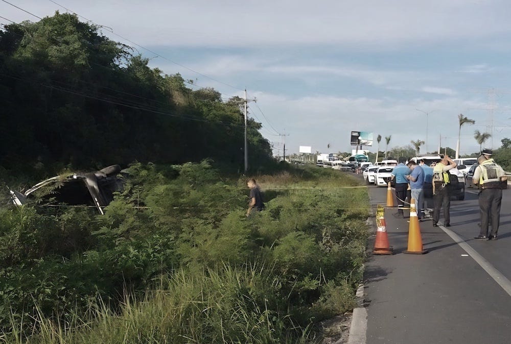 Repartidor de paquetería muere en carretera Playa del Carmen-Cancún al perder control de su unidad