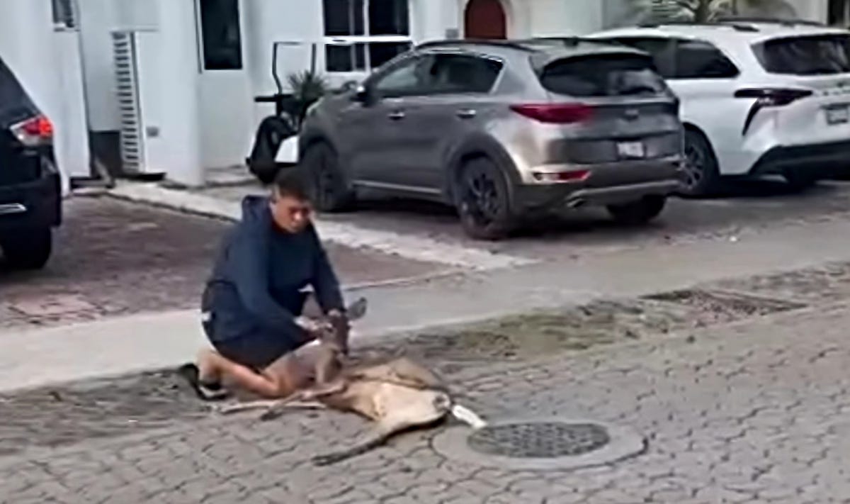 Reportan delicado el estado de salud del Venado atropellado en Playa del Carmen (video)
