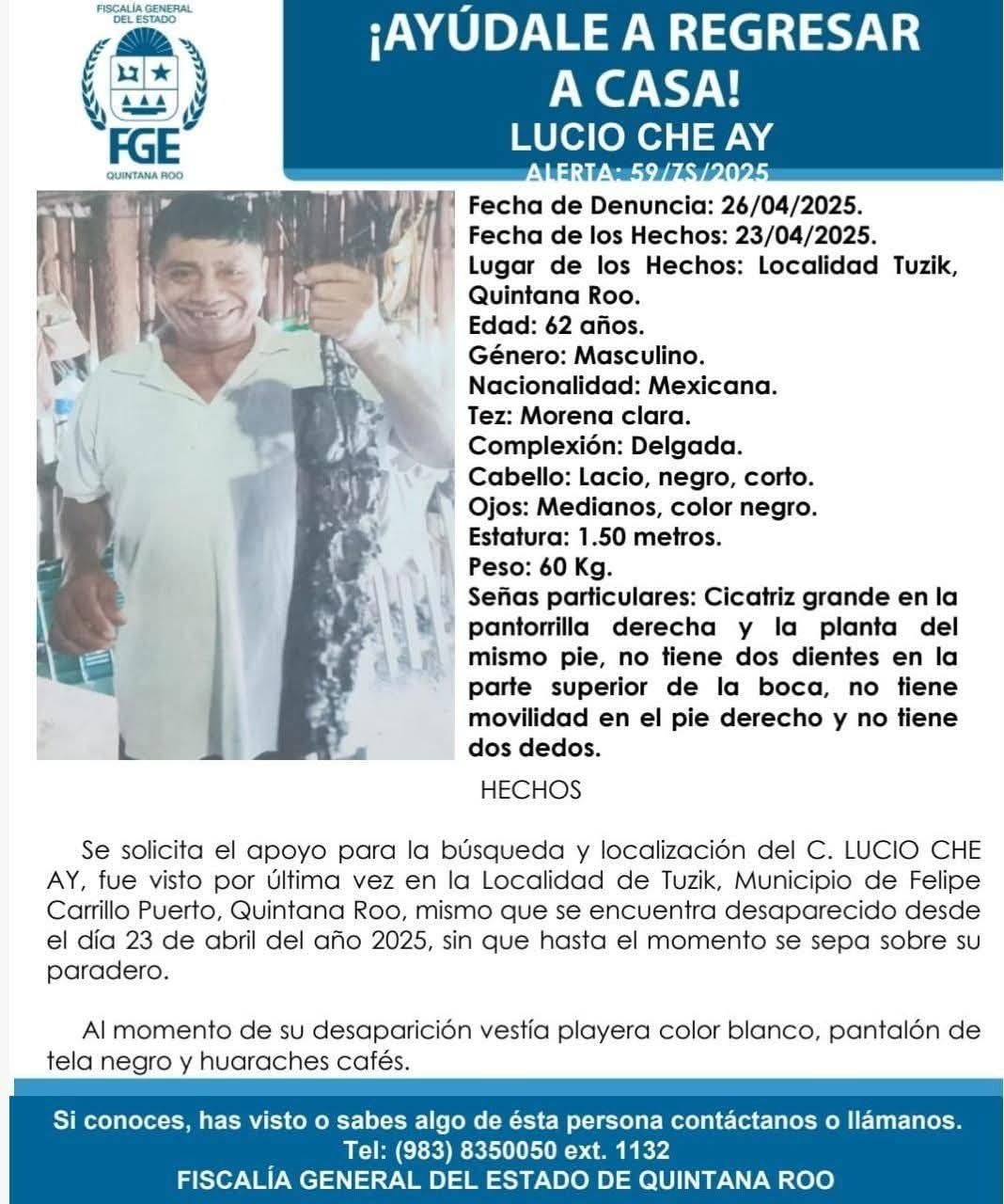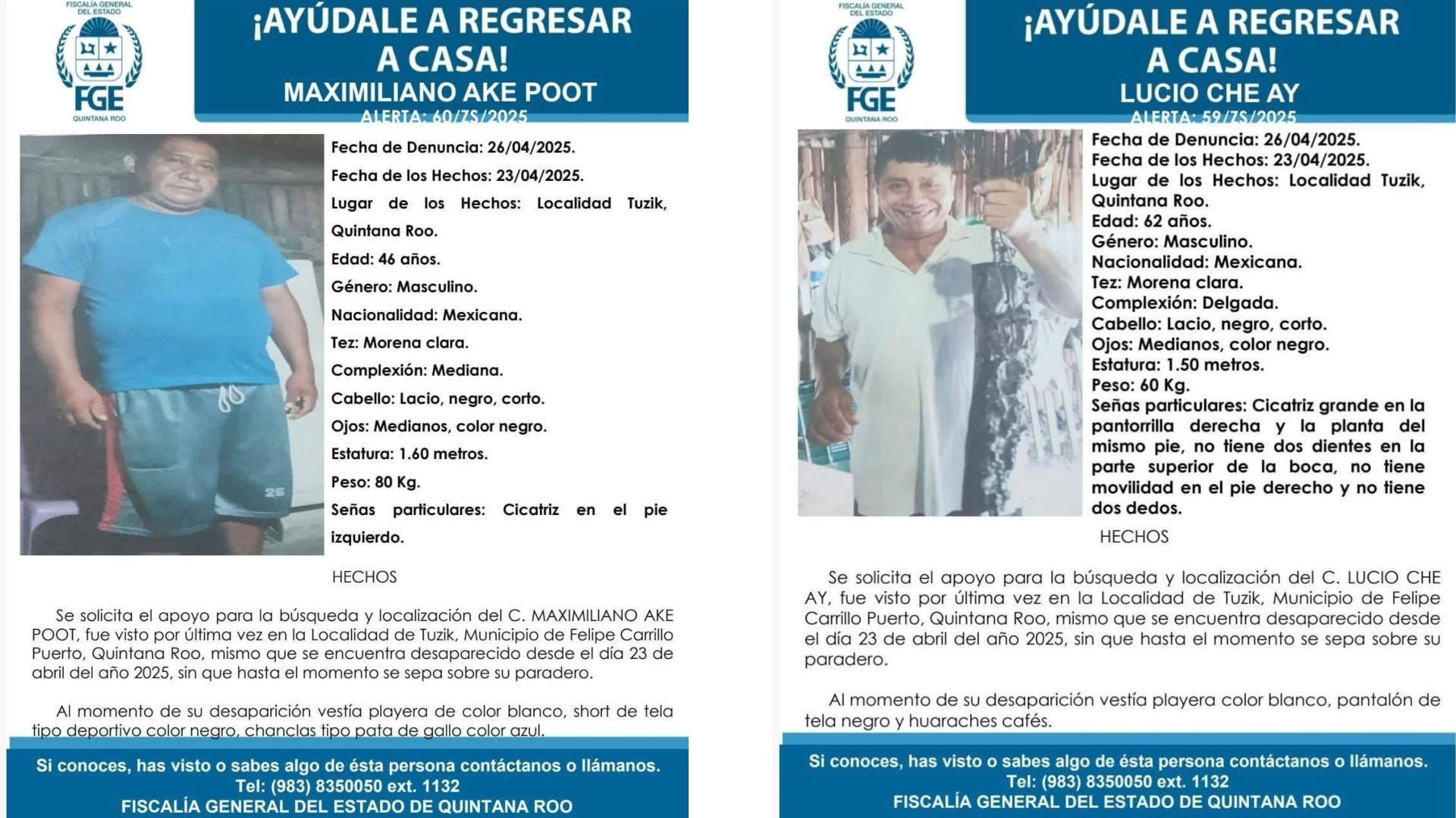 Reportan desaparición de ex delegado de la comunidad Maya de Tuzik, Felipe Carrillo Puerto; también desaparece hombre que lo acompañaba