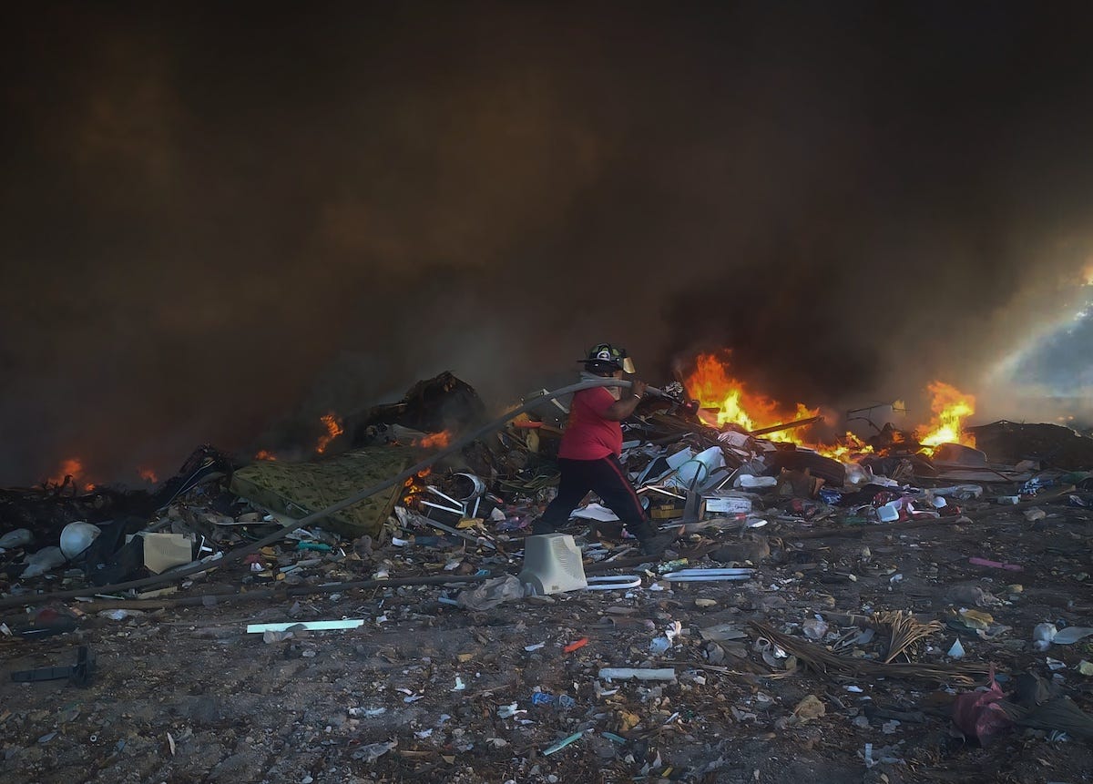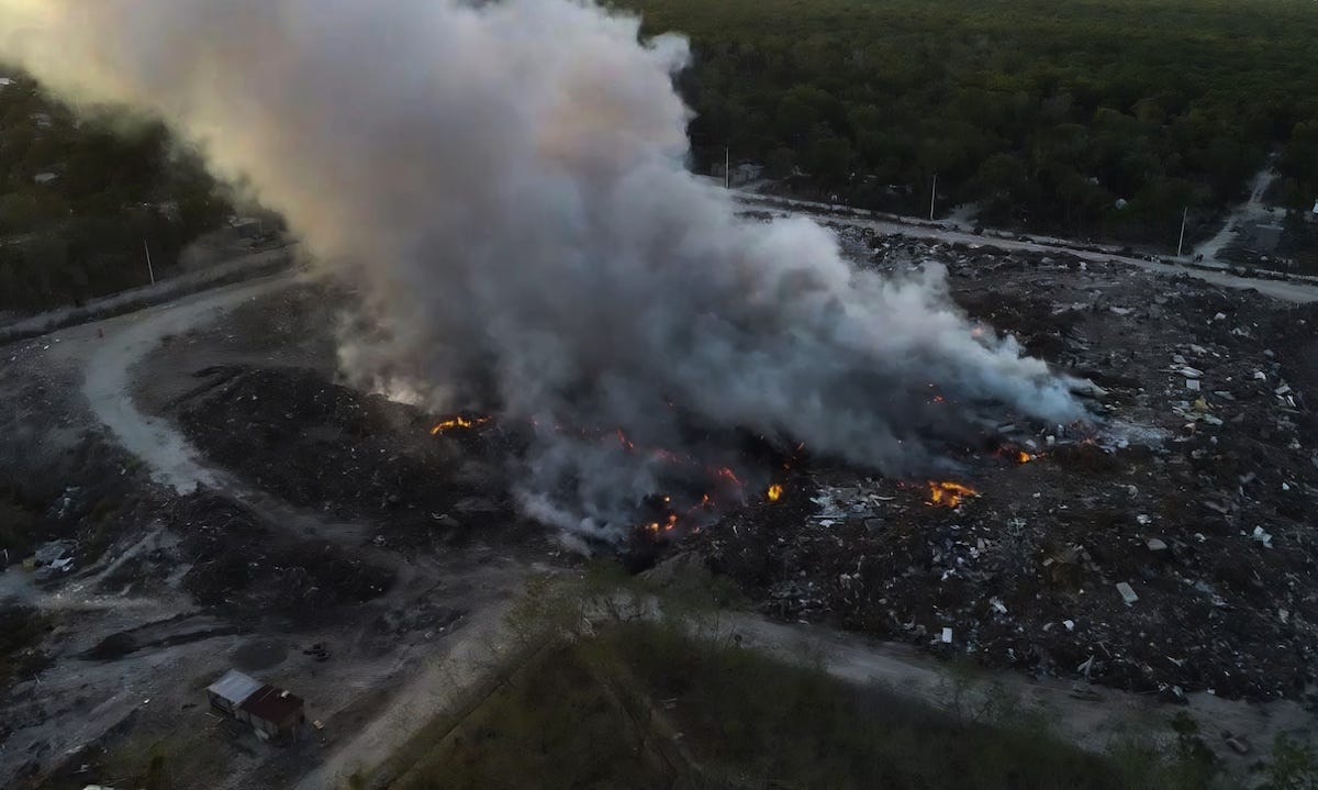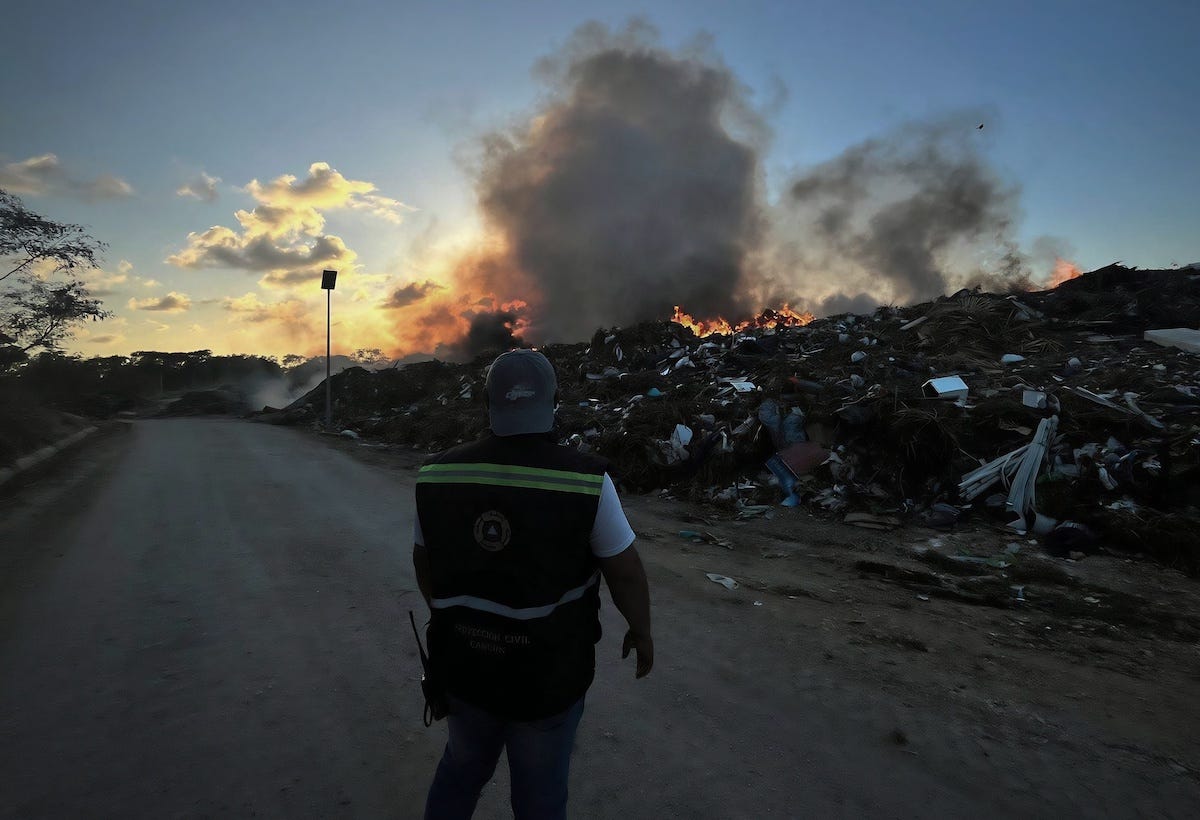 Cancún.— Esta tarde se reportó un incendio en el antiguo basurero de la región 241 en el municipio de Benito Juárez, afectando aproximadamente una hectárea debido a la acumulación de desechos.