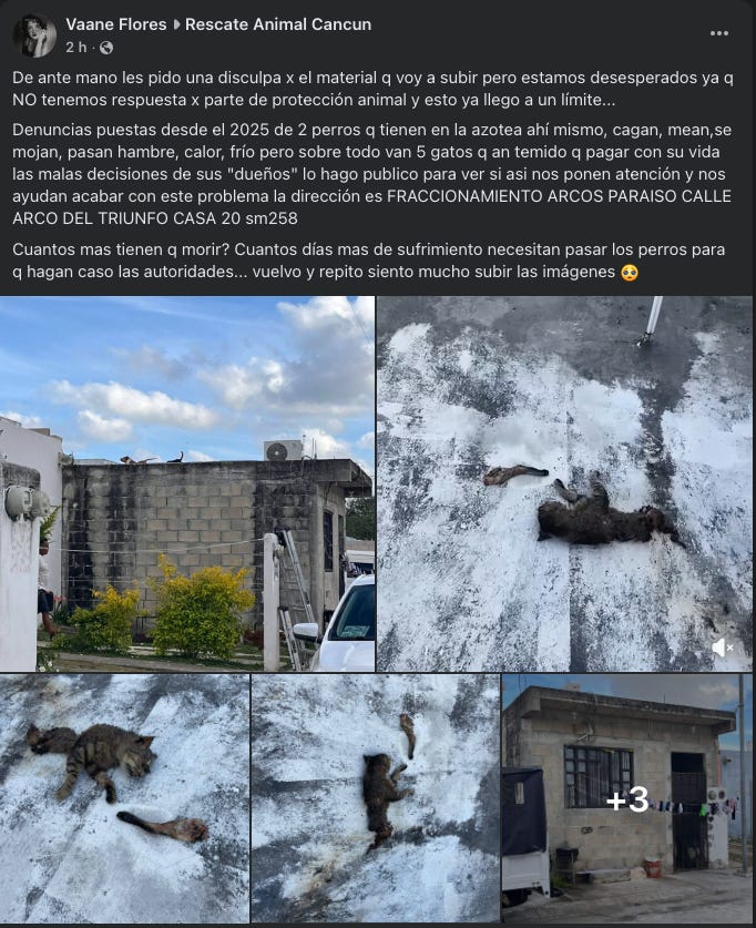 Los residentes hacen un llamado urgente a las autoridades municipales y a Protección Animal para que atiendan este caso de presunto maltrato animal en Cancún y garanticen el bienestar de los perros.