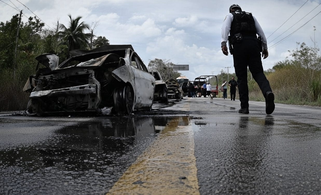 Reportan nueve detenidos por quema de vehículos y comercios en Quintana Roo, tras el abatimiento del "Mencho" en Jalisco
