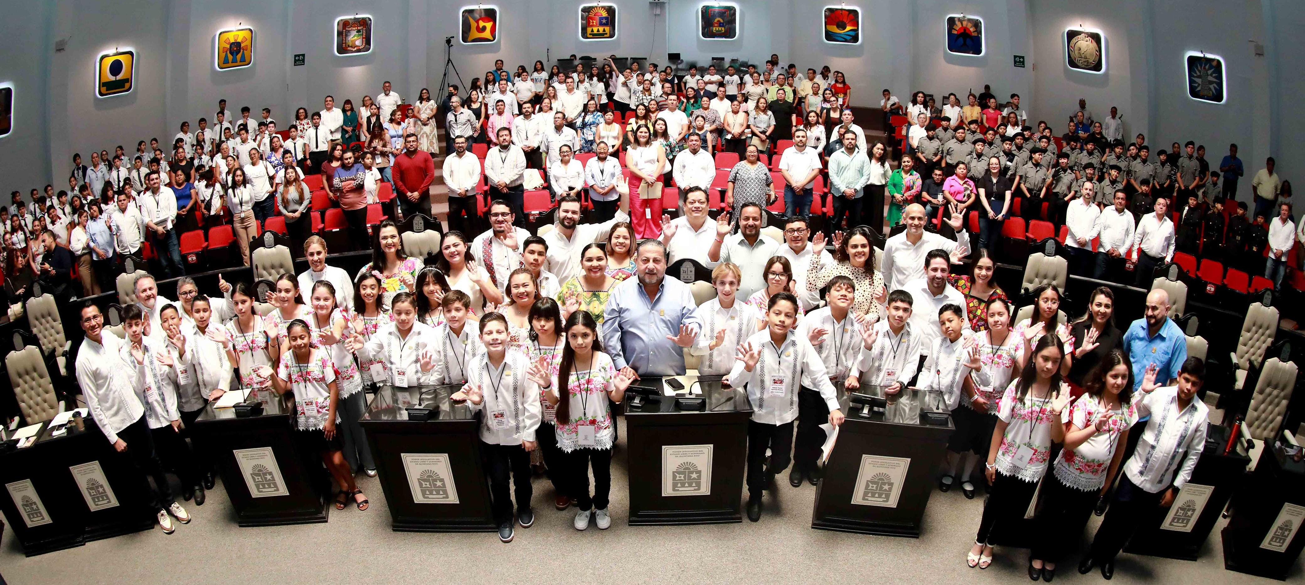 Chetumal.- La voz transformadora de las infancias quintanarroenses se hizo escuchar en el Congreso del Pueblo durante la Sesión Solemne del Doceavo Parlamento Infantil 2025, un evento donde niñas y niños de sexto de primaria que asumieron con entrega y responsabilidad el rol de diputadas y diputados por un día, compartieron sus propuestas y su visión para transformar Quintana Roo.