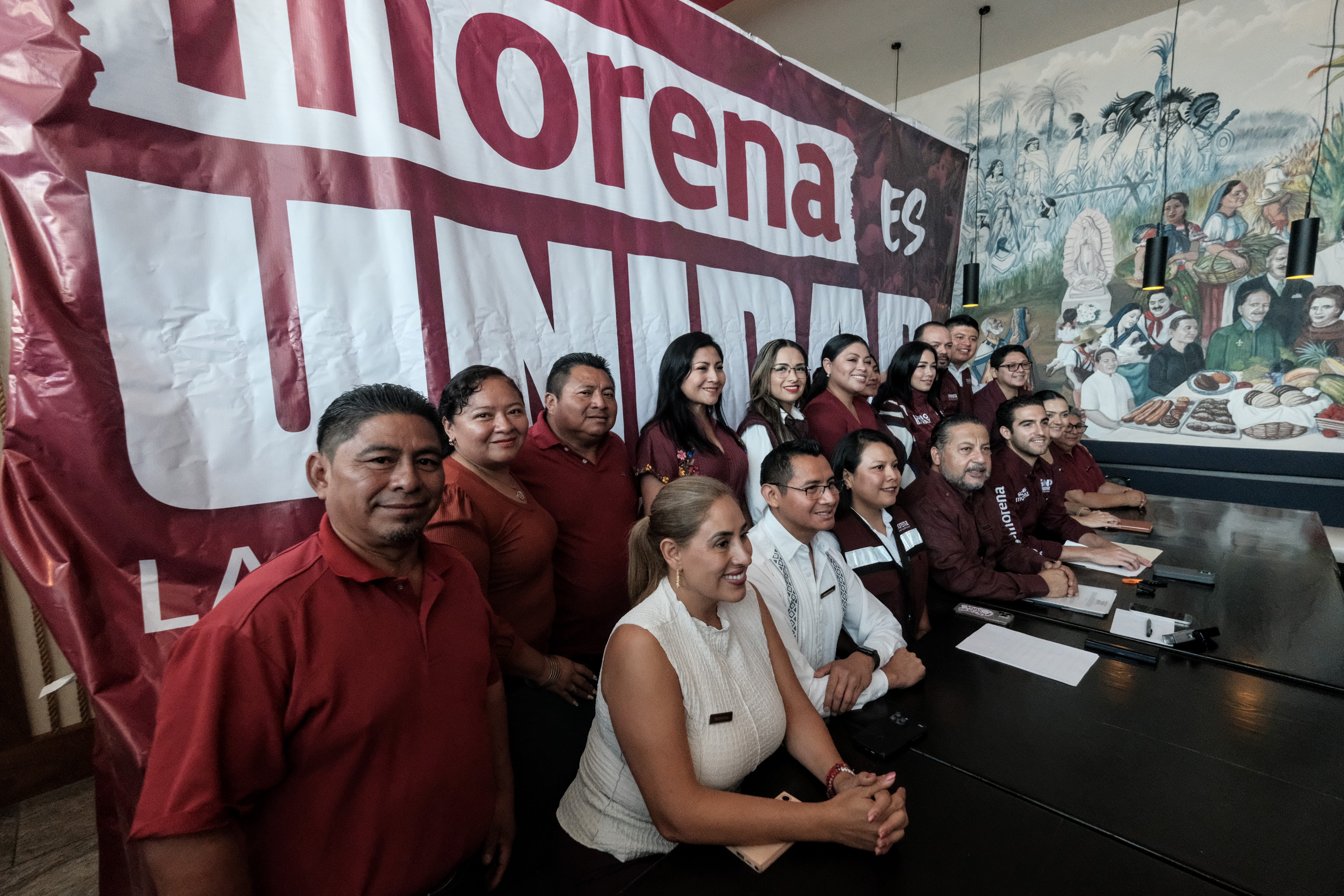 La cita fue a las 9:30 horas y los personajes llegaron muy puntuales. Entre los morenistas estaban las diputadas locales Euterpe Gutiérrez, Paola Morena, Jennifer Rubio y Jimena Lasa, así como el diputado local Alberto Batun Chulim.