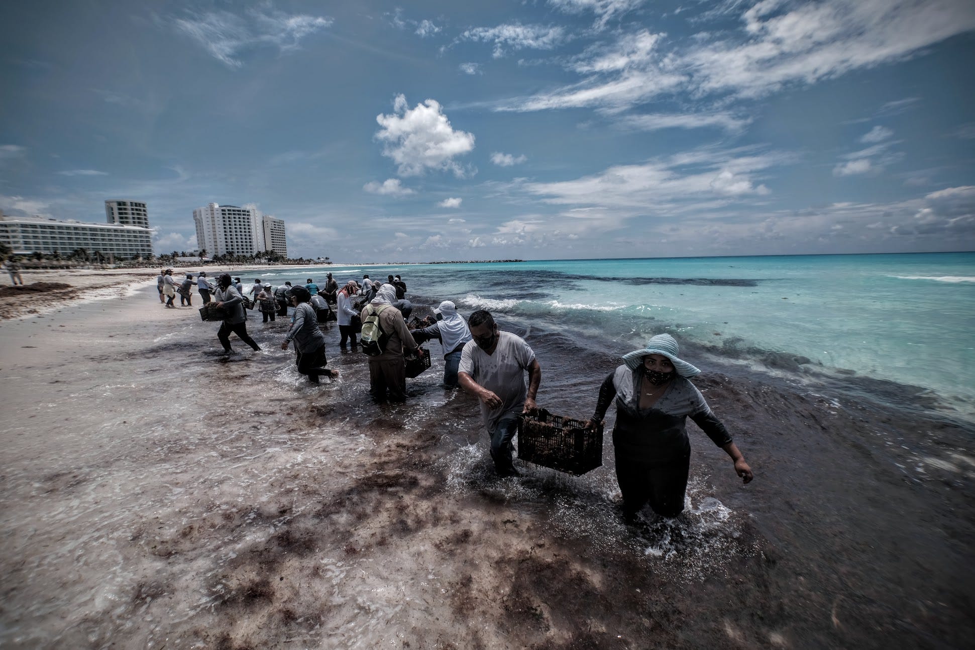 EA: Sí, claro, hay una afectación grave y no lo puedes hacer. De hecho, el uso de maquinaria pesada en el litoral costero está prohibido. Pero aquí se entiende, es una emergencia ambiental. A veces la recolección manual no es suficiente o no es lo mismo. Una máquina hace lo que hacen 50 salgaceros. Entonces, también por cuestiones de tiempo y propiedad, se hace la recuperación de esa manera. Aunque también lo que hemos estado viendo es que la erosión es mucho mayor. Y eso ha unido al aumento en el nivel del mar. El Caribe mexicano es una zona más, es de las zonas más vulnerables a nivel mundial en cuestión de cambio climático. ¿Por qué? Porque tenemos un elevado aumento de la temperatura de 30 grados, prácticamente 33 grados centígrados, lo cual es mucho. Y también tenemos al año un promedio de 9 milímetros de aumento del nivel del mar. Otras zonas del planeta tenemos 2 milímetros, 3 milímetros, 4 milímetros. Y aquí en el Caribe Mexicano tenemos hasta 9 milímetros. Entonces, eso hace también que al aumentar el nivel del mar se produzca más erosión aunado con la acción abrasiva. El sargazo funciona como una lija. Cuando está a la orilla de la playa, el sargazo erosiona todavía más la playa y se ven esos taludes muy marcados como lo que vemos ahí en Playa Mamita, en Playa 38, son taludes que se marcan por la erosión. Y también el uso de maquinaria, de maquinaria pesada, no está permitido porque compacta la arena, también afecta los nidos de tortuga marina, pero también hay que entenderlo en cierta manera, a veces llegan 150 a 250 toneladas de sargazo por día en ese punto. Entonces es muy complicado trabajarlo de manera manual. Hay que meter maquinaria al apoyo.