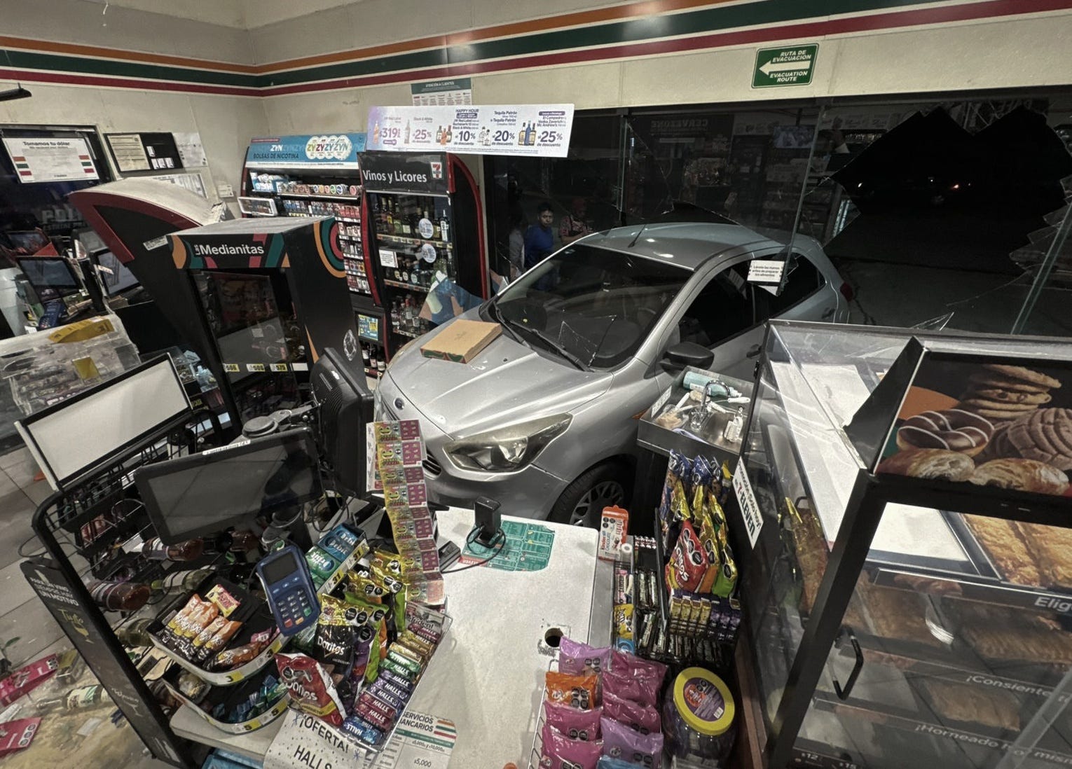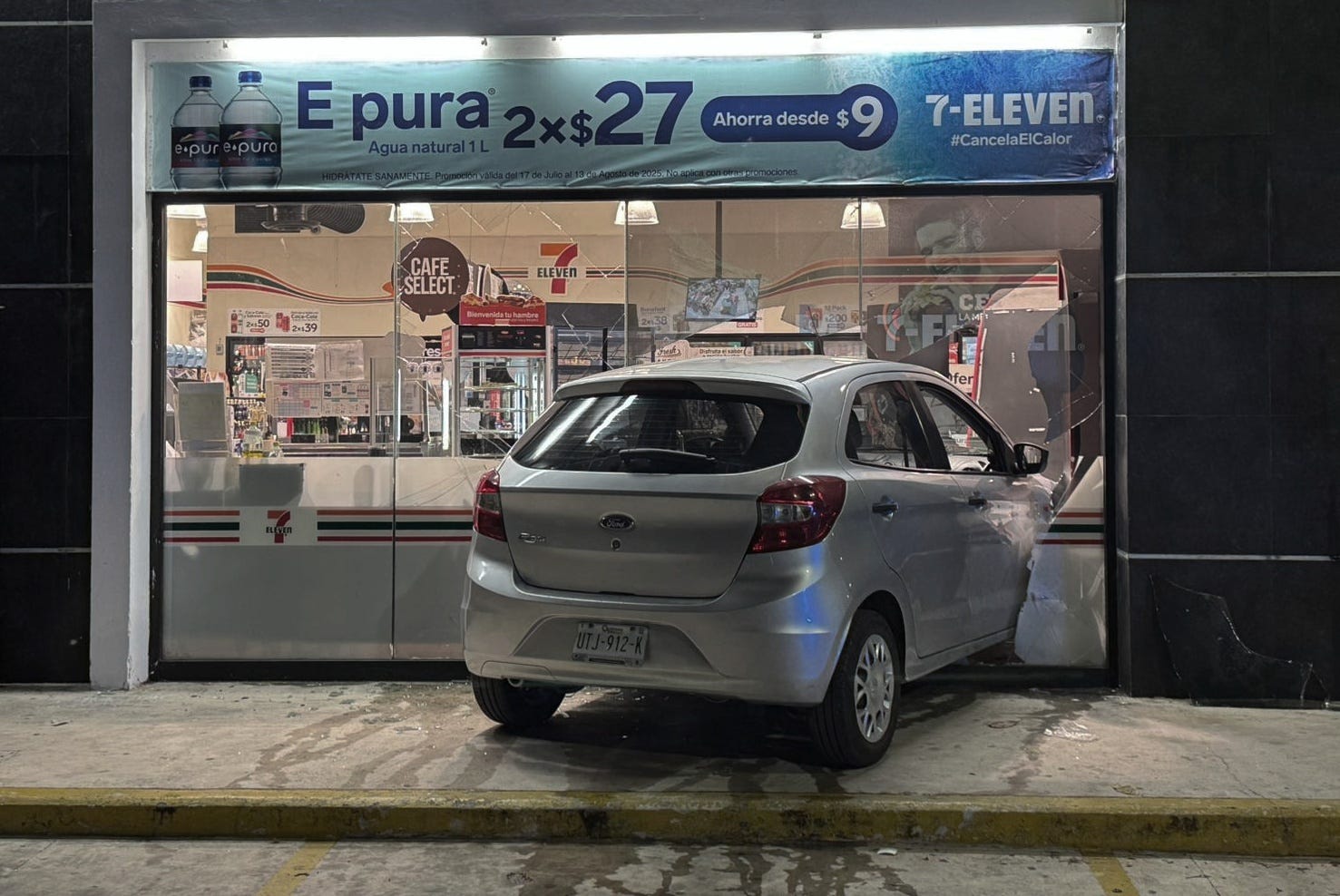 Playa del Carmen.— ¡Oh, qué nochecita la de este lunes en el fraccionamiento Cataluña! Una intrépida joven, con más entusiasmo que destreza automovilística, decidió que la fachada de cristal de un Seven Eleven en la avenida 28 de Julio necesitaba un rediseño urgente. ¿El arma del crimen? Un humilde Ford Figo gris, "gentilmente" tomado prestado (sin permiso, claro) del pobre rommie que aún debe estar buscando su auto entre los escombros de su confianza.