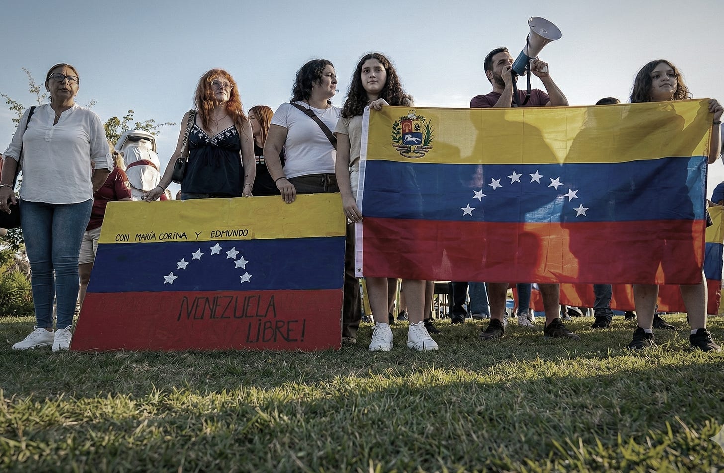 Los venezolanos difundieron entre su comunidad la manifestación que festejó la salida de Maduro. Los residentes venezolanos fueron convocados por Marylin Torres, la reconocida activista venezolana dedicada a la atención de inmigrantes que arriban de diversos países.