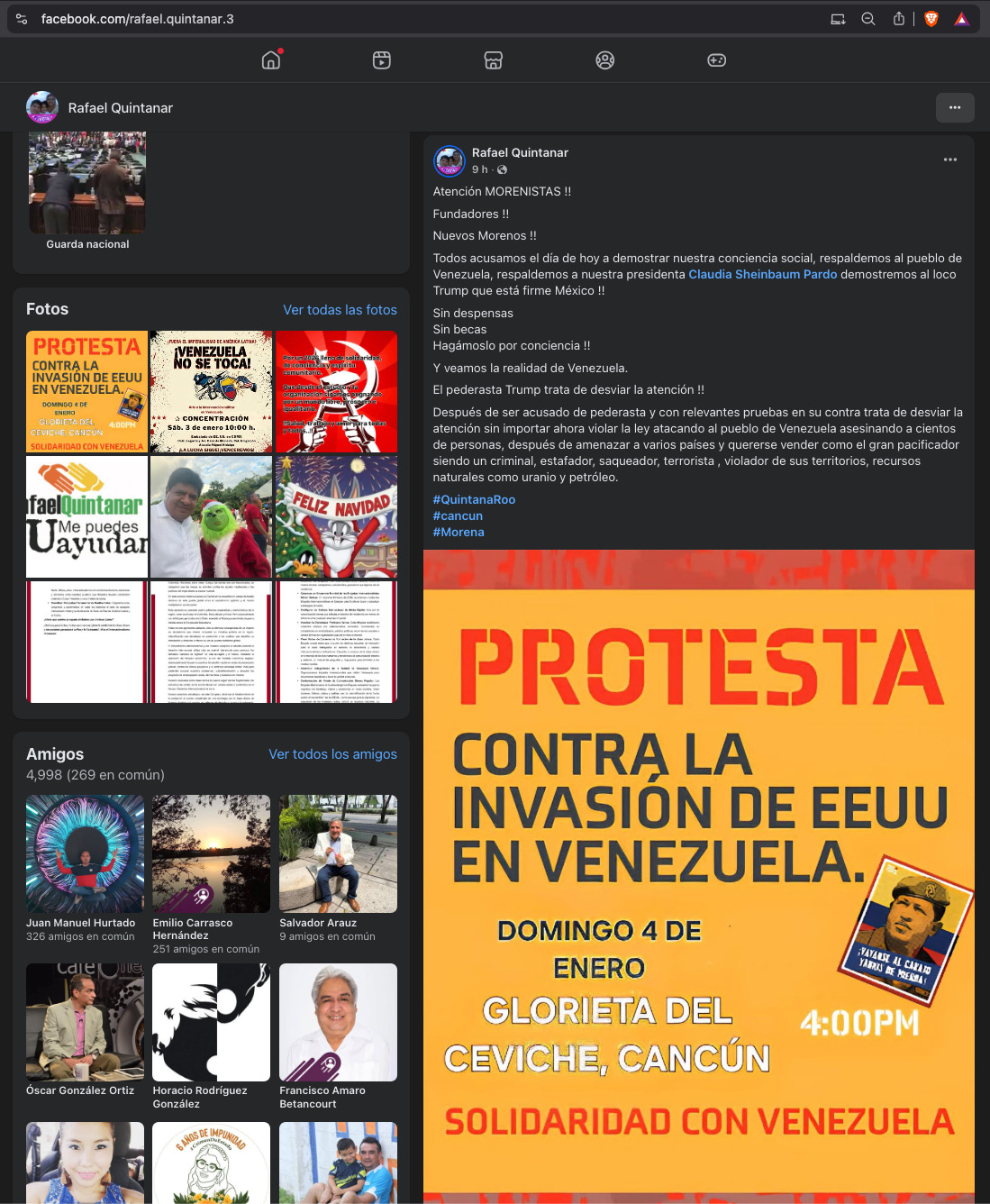 Cancún.— La icónica glorieta de El Ceviche se convirtió el domingo en el epicentro de manifestaciones polarizadas tras la captura del presidente de Venezuela, Nicolás Maduro, y su esposa, Cilia Flores, en una operación militar estadounidense realizada en Caracas el 3 de enero. Por un lado, la comunidad de venezolanos manifestó su júbilo por la aprehensión del ex dictador, y por el otro, simpatizantes ligados a Morena protestaron por la intervención de los Estados Unidos.