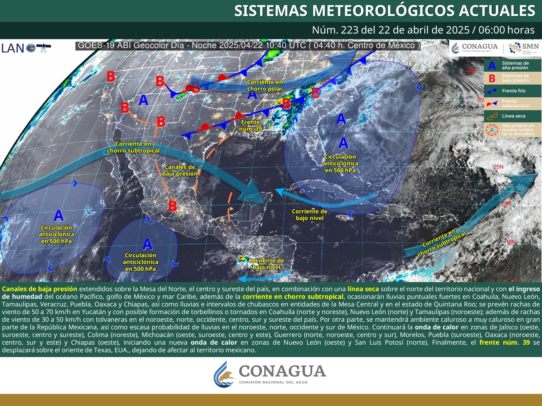 - Isla Mujeres: Parcialmente nublado con lluvias aisladas. Máxima de 32 a 34 °C, mínima de 25 a 27 °C. Sensación térmica de 36 °C.