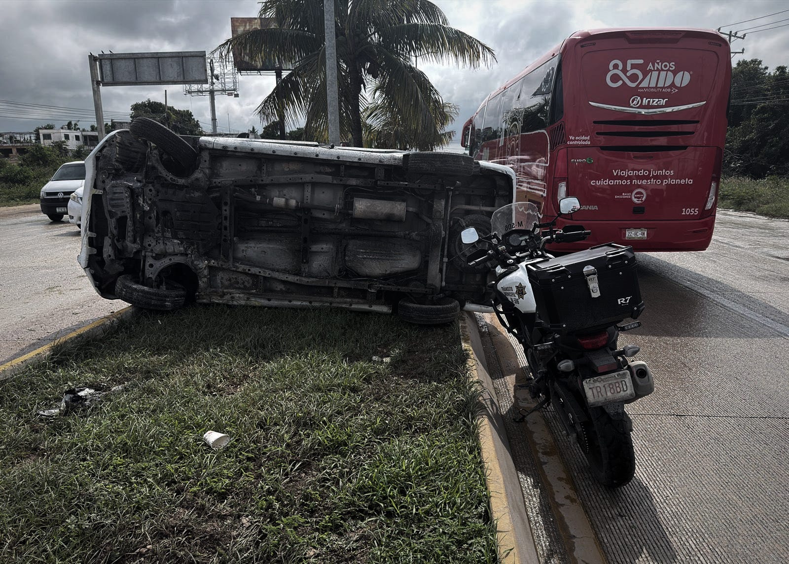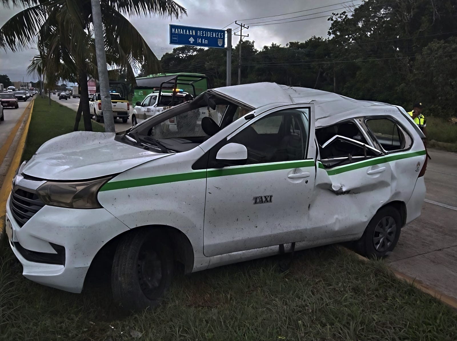 Taxista vuelca en el Bulevar Colosio de Cancún; manejaba a exceso de velocidad