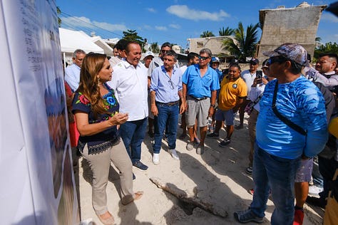 Acompañada por el presidente municipal de Lázaro Cárdenas, Nivardo Mena Villanueva, la titular del Ejecutivo expresó: “hoy venimos a cumplirle a Holbox, venimos a decirles, con hechos, que esta isla importa, que su gente importa, que su tranquilidad importa”.