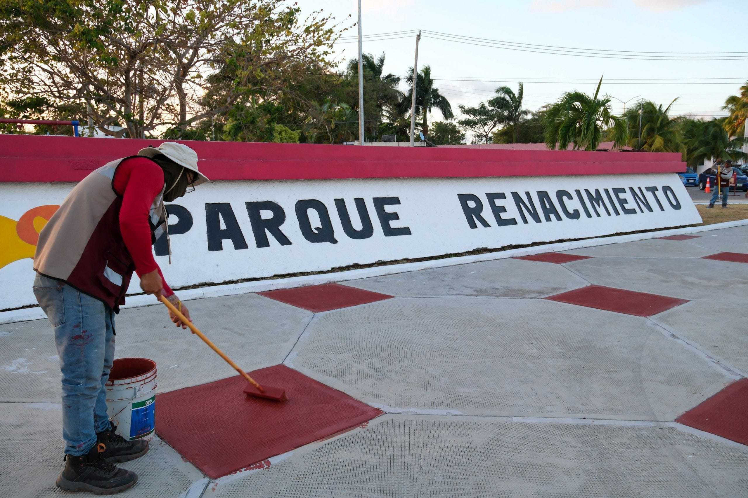 Trabaja Mara Lezama en el Parque Renacimiento de Chetumal con el Programa de Limpieza y Rescate de Espacios Públicos