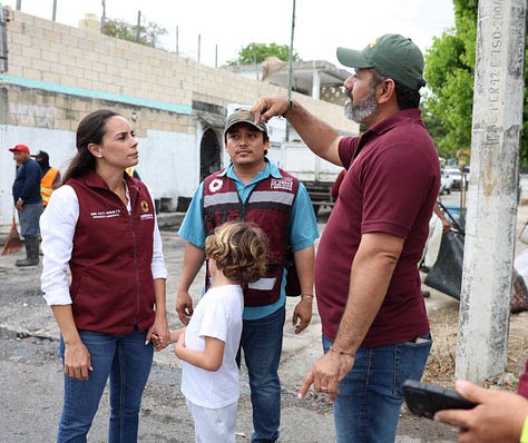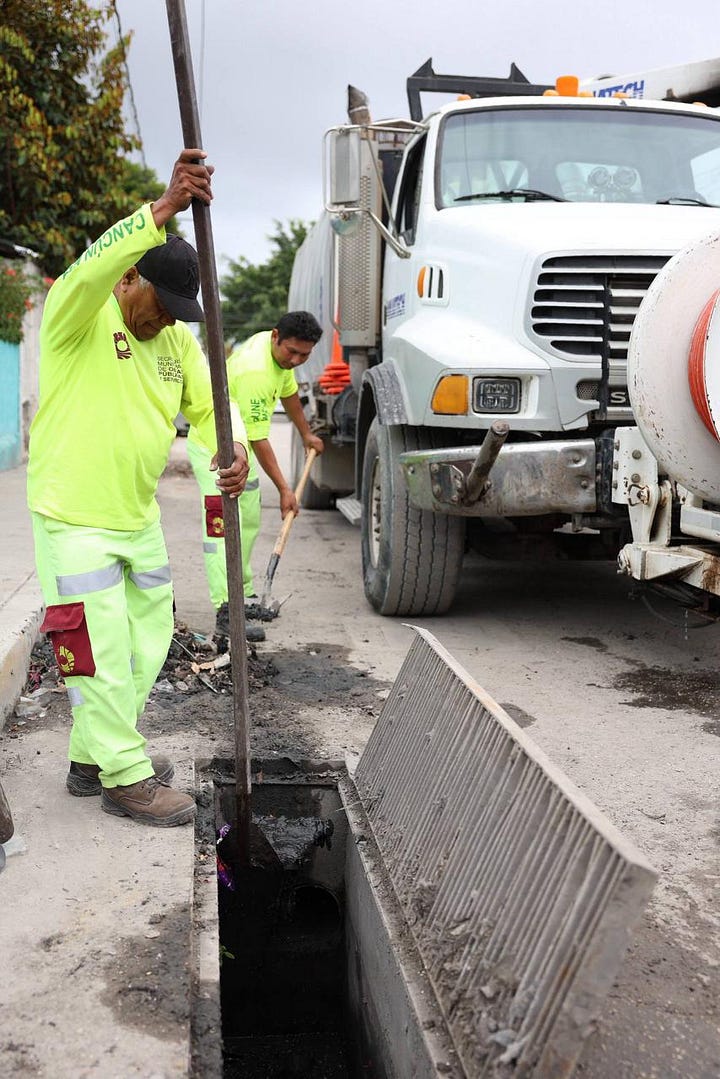 Durante un recorrido de supervisión en las Supermanzanas 75 y 76, la Alcaldesa constató los correctos trabajos de mantenimiento que incluyen el desazolve de pozos de absorción, limpieza de rejillas, chapeo, poda, liberación de guarniciones y labores de bacheo.
