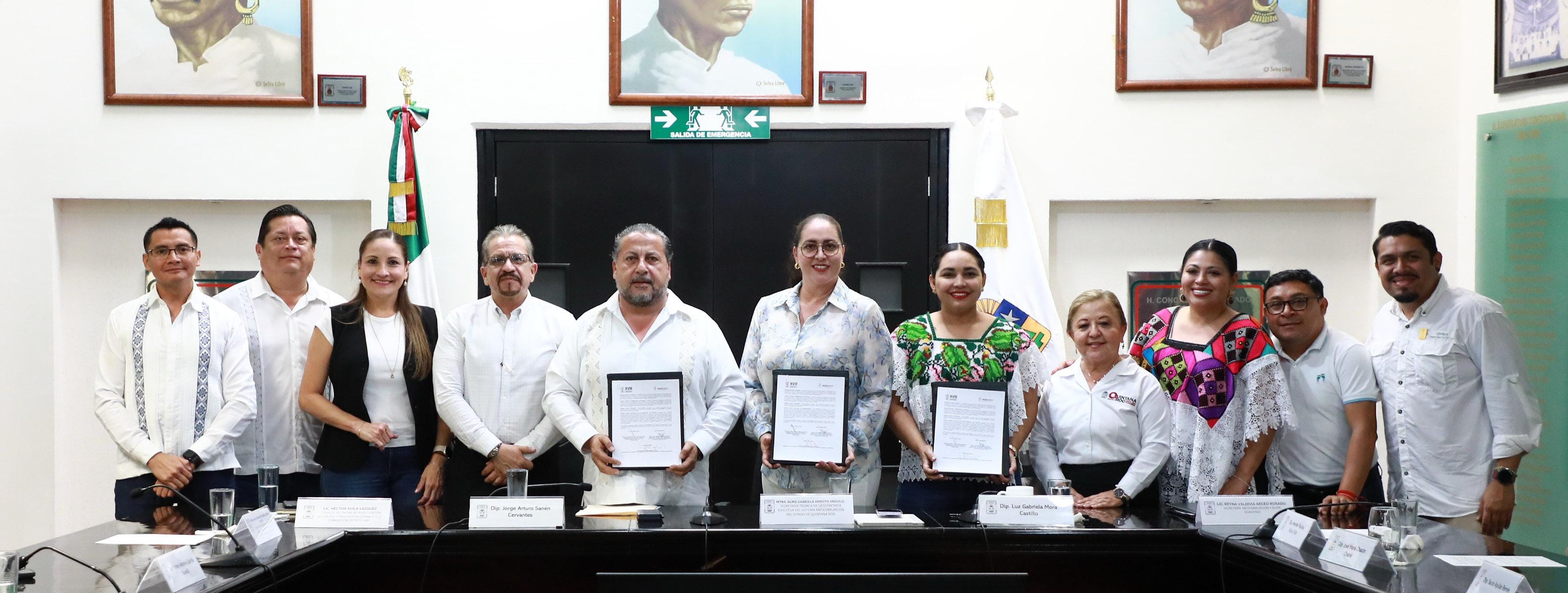 También presenciaron esta firma la diputada Jennifer Rubio Tello y los diputados Alberto Batún Chulim, Saulo Aguilar Bernés, José María Chacón Chablé y Rubén Antonio Carrillo Buenfil.