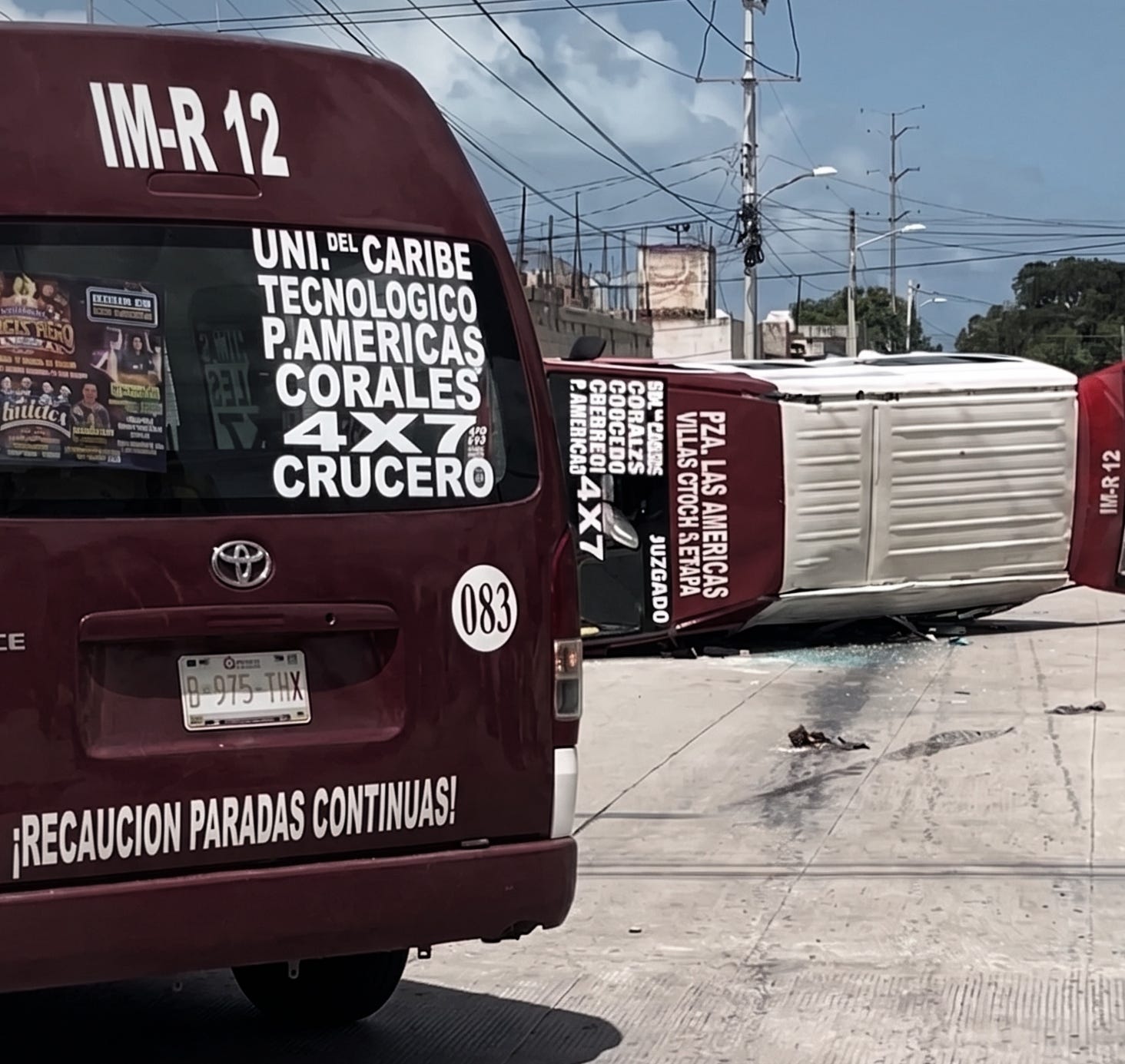 Transporte púbico de Cancún: Combis con pasajeros a bordo juegan carreritas y una termina volcada con 14 lesionados