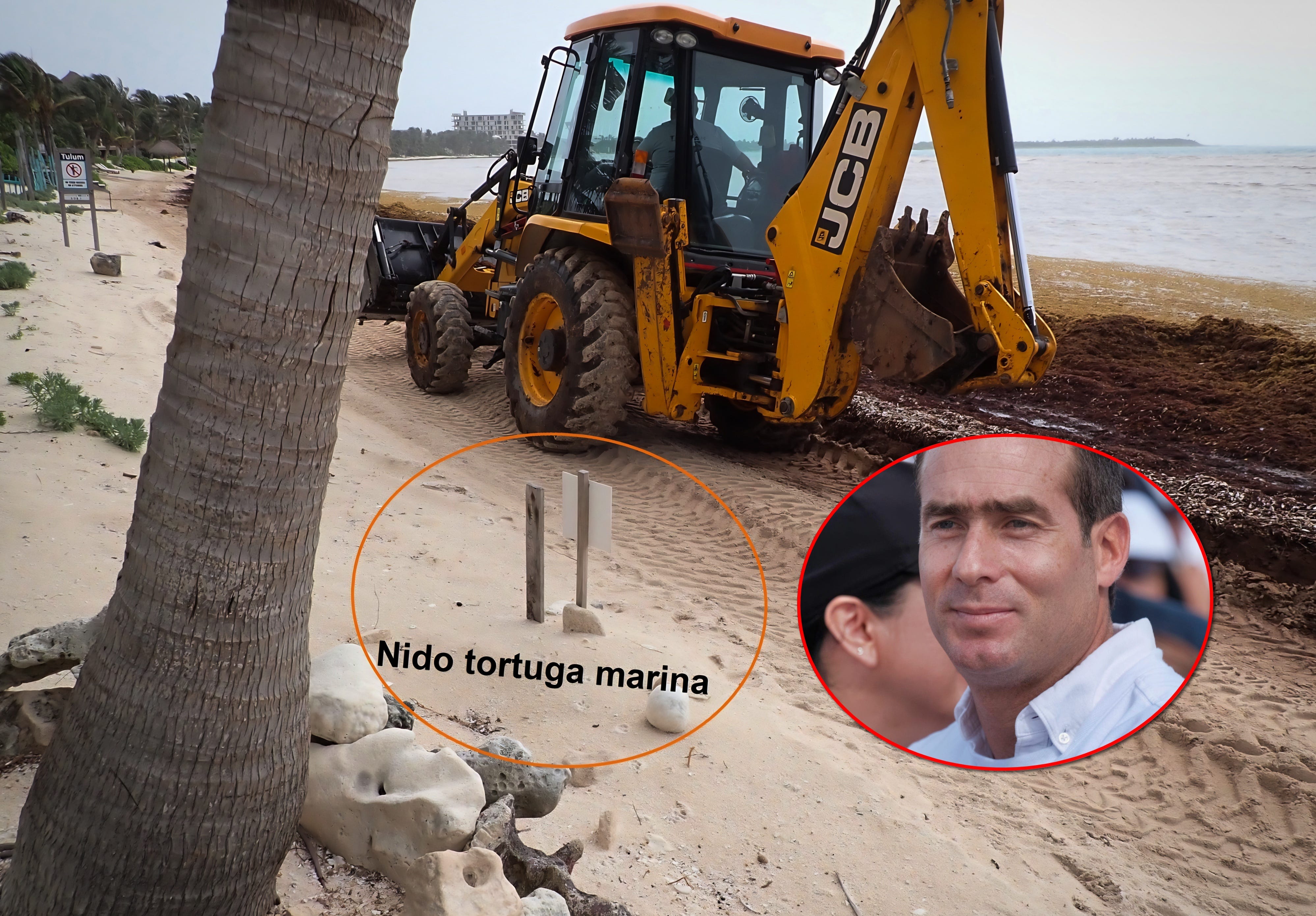 Tulum.— El colectivo "Amigos de Bahía Soliman" denunció en sue redes una situación alarmante en las playas, donde maquinaria pesada sigue siendo utilizada para limpiar sargazo, incluso en áreas identificadas como zonas de anidación de tortugas marinas. Las imágenes y videos compartidos la mañana de este lunes, muestran una excavadora operando a pocos metros de nidos protegidos, un hecho que confirma la falta de supervisión de un plan coordinado de limpieza de sargazo en el municipio presidido por Diego Castañón.