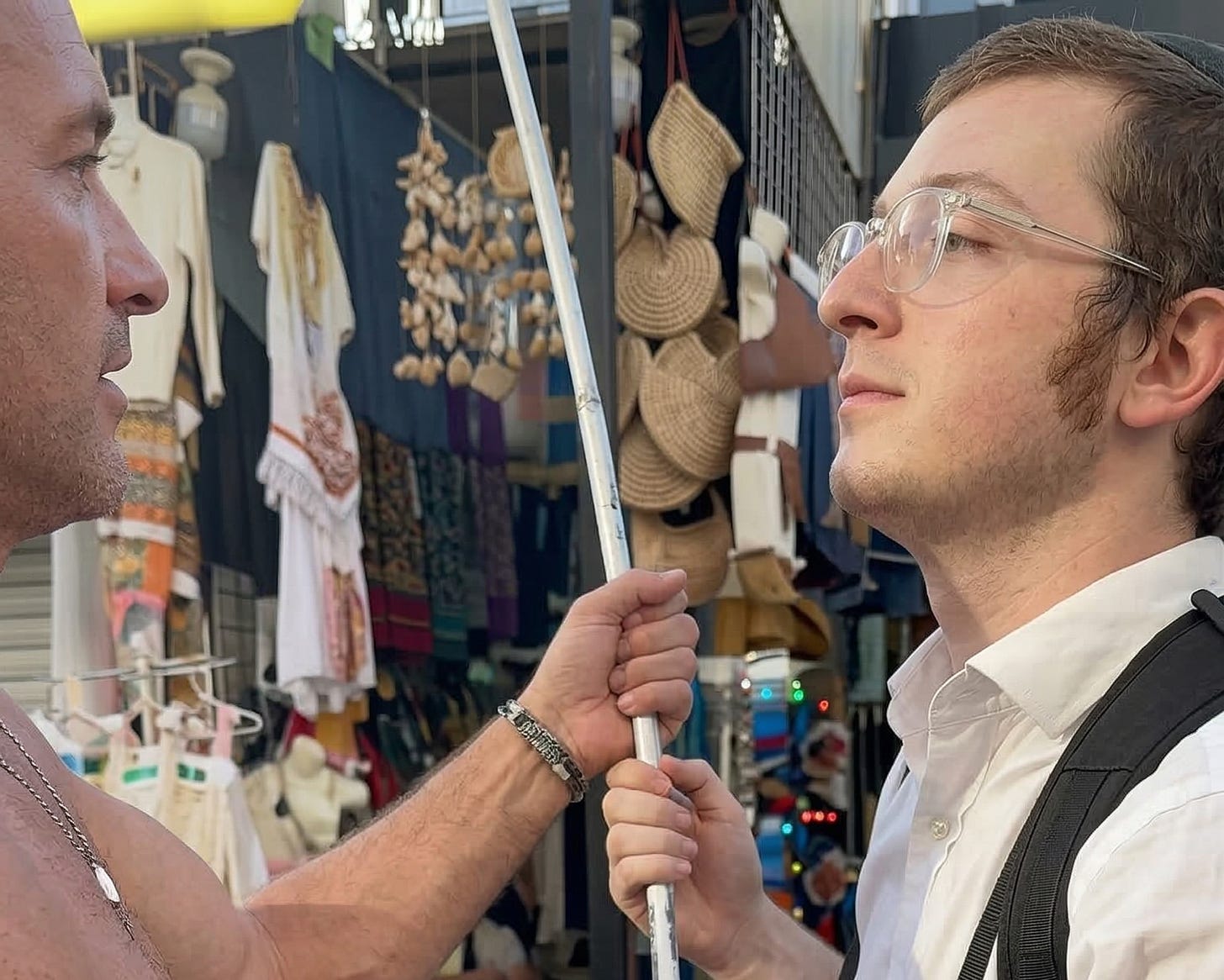 El agresor arrebata un estandarte religioso —conocido como la bandera de Moshiach o Mashíaj, símbolo utilizado por este grupo para actividades de difusión de su fe— y lo arroja o rompe en el suelo, mientras profiere insultos y amenazas en inglés, instando a la víctima y su grupo a “largarse”. El incidente ocurrió cerca del Parque Fundadores, donde el sujeto habría iniciado el hostigamiento varias cuadras antes. La víctima, quien habitualmente invita a turistas israelíes a conocer sinagogas y actividades comunitarias locales, portaba insignias judías visibles durante la difusión pacífica.