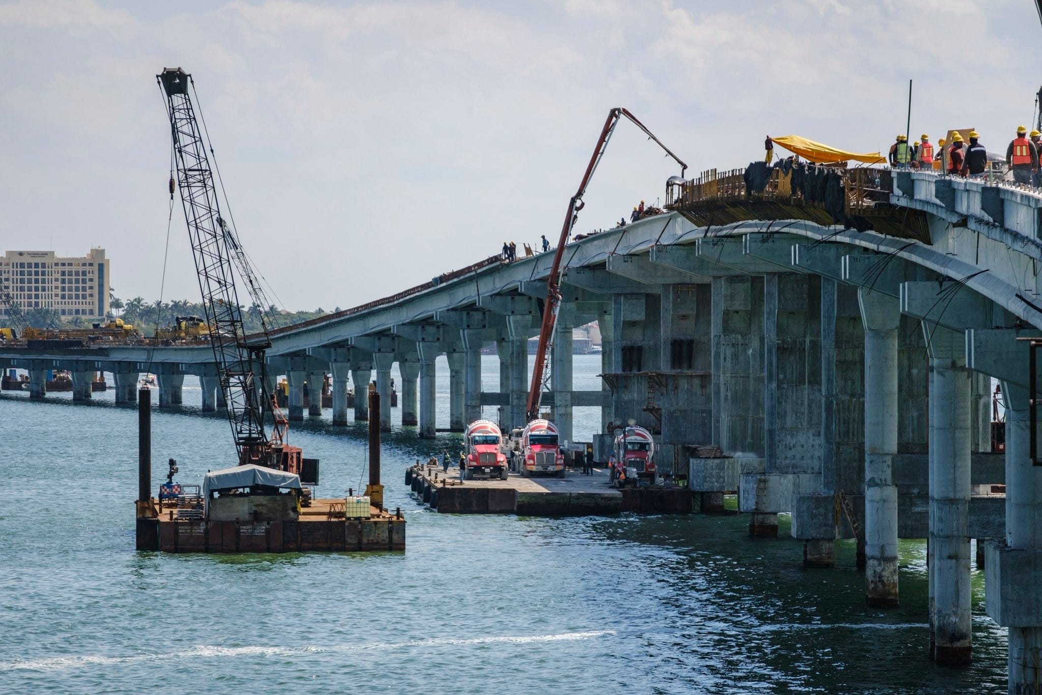 Unen estructura total del Puente Nichupté; "casi listo", anuncia la gobernadora Mara Lezama