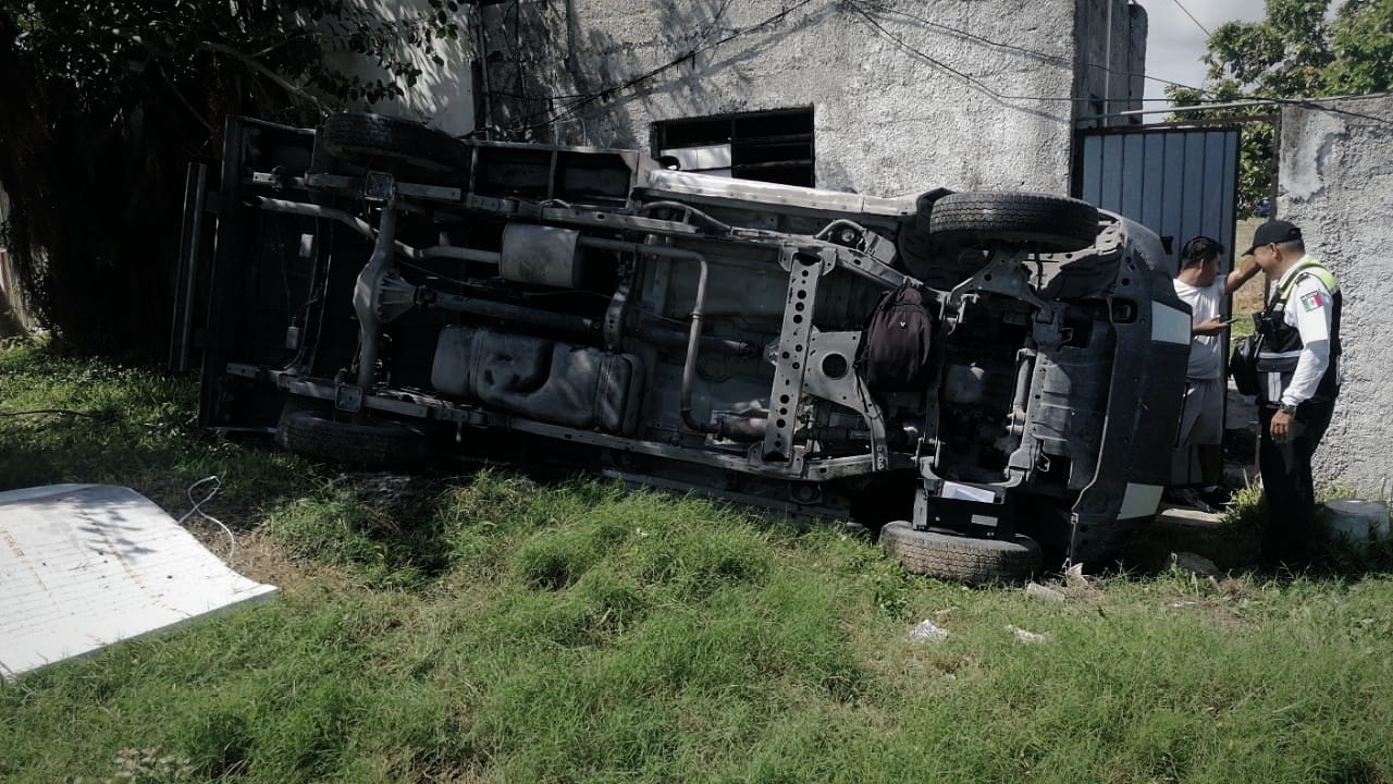 Cancún.— Una camioneta Nissan Estaquitas de color blanco se volcó en el bulevar Colosio, justo enfrente de la Universidad Anáhuac, después de que el conductor perdiera el dominio del vehículo por no considerar el estado de la carretera.