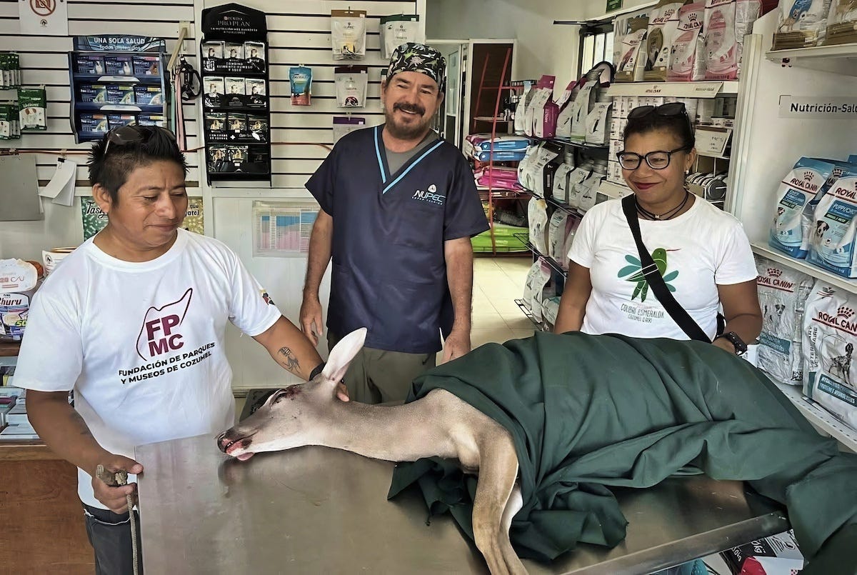 Cozumel.— Un venado cola blanca (Odocoileus virginianus) que resultó herido tras ser atropellado en la carretera perimetral sur de la isla, fue rescatado con vida gracias a la rápida intervención de la ciudadanía. El ejemplar se encuentra actualmente en proceso de recuperación y será liberado una vez que se haya recuperado completamente.