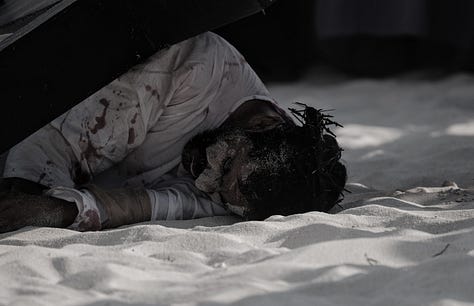 Miles asistieron este viernes santo a Playa Delfines de la Zona Hotelera de Cancún para presenciar como cada año, El Viacrusis Playero. Este año regresó Rafael Pérez Pascal al papel de Jesús. Él interpretó a Cristo en el año 2023 y este 2025 repitió. María Coral Castro Montalvo continúa interpretando a la Virgen María como cada año. Esta es una galería de imágenes que muestra algunos de los momentos más emotivos de esta puesta en escena.
