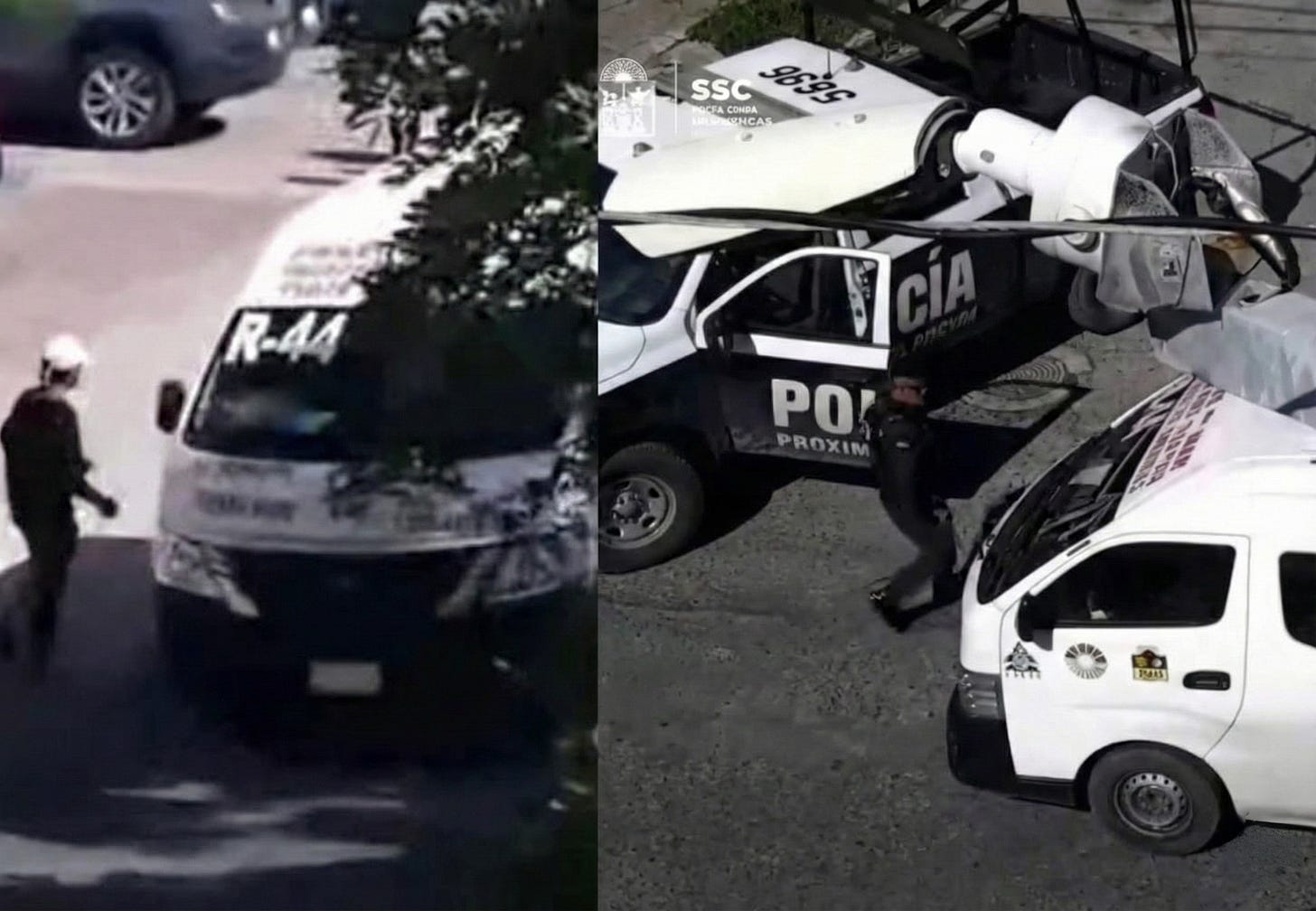 En las imágenes difundidas por la dependencia se observa cómo un sujeto delgado, con gorra blanca y ropa oscura (pantalón y playera), hace parada a la combi. Minutos antes de subir a la unidad, extrae de su cintura lo que parece ser un arma de fuego.
