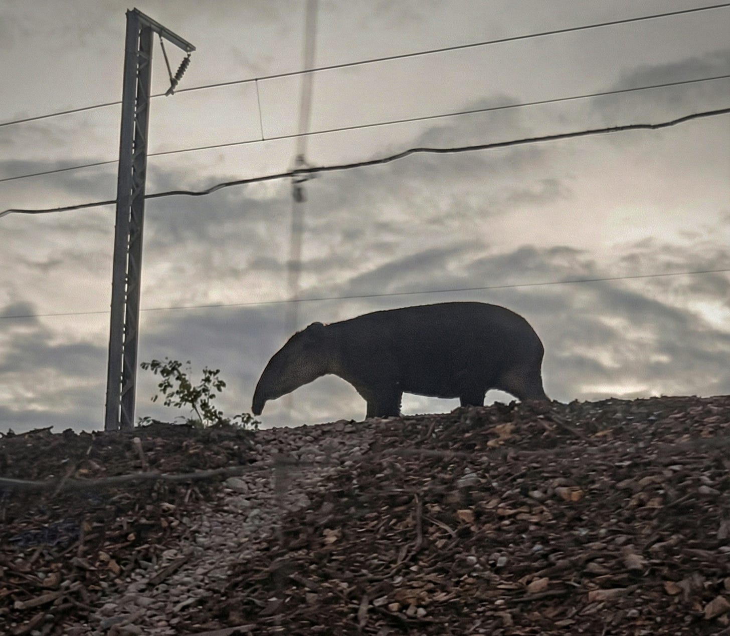 Video: Tapir atrapado en la vía del Tren Maya; malla metálica le impide paso libre