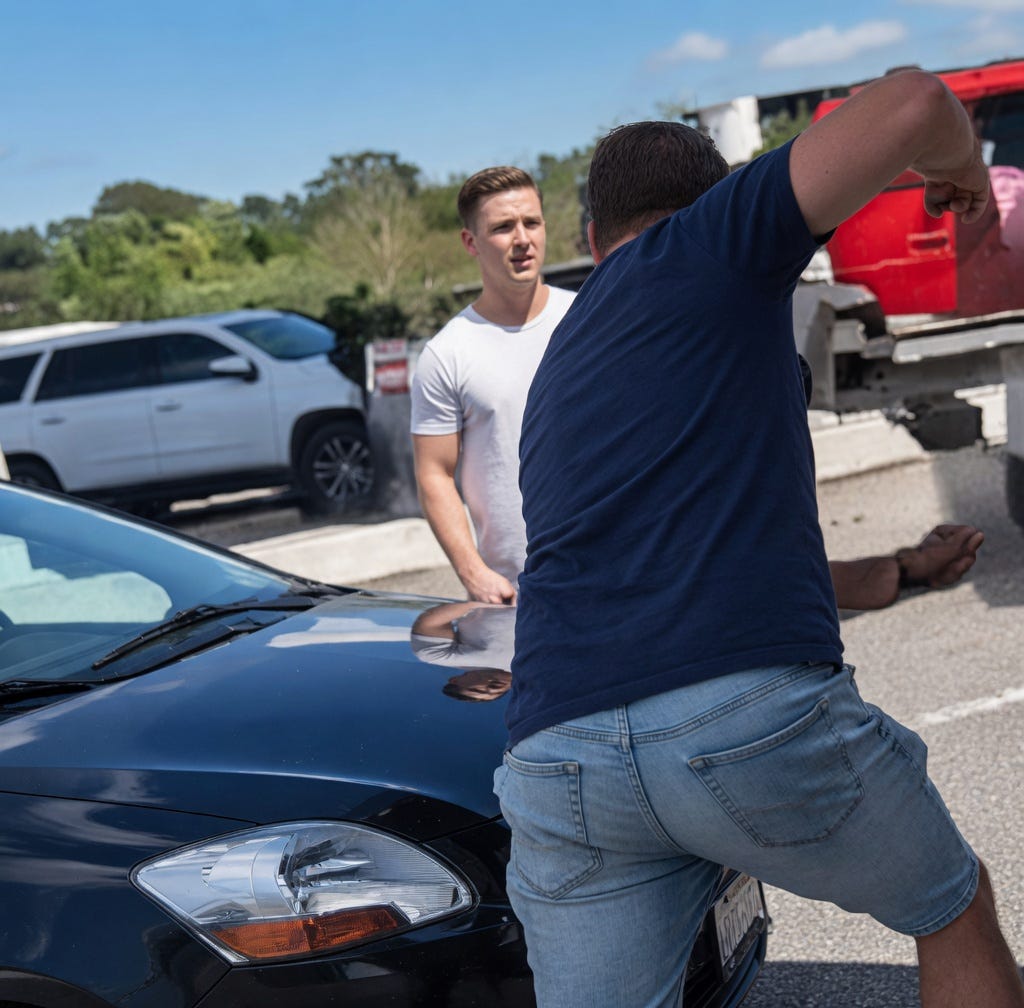 Turista (Gritando): “You hit the fucking car, you motherfucker! You hit the car! You broke the fucking car!” (¡Golpeaste el maldito carro, hijo de p...! ¡Golpeaste el carro! ¡Rompiste el maldito carro!)