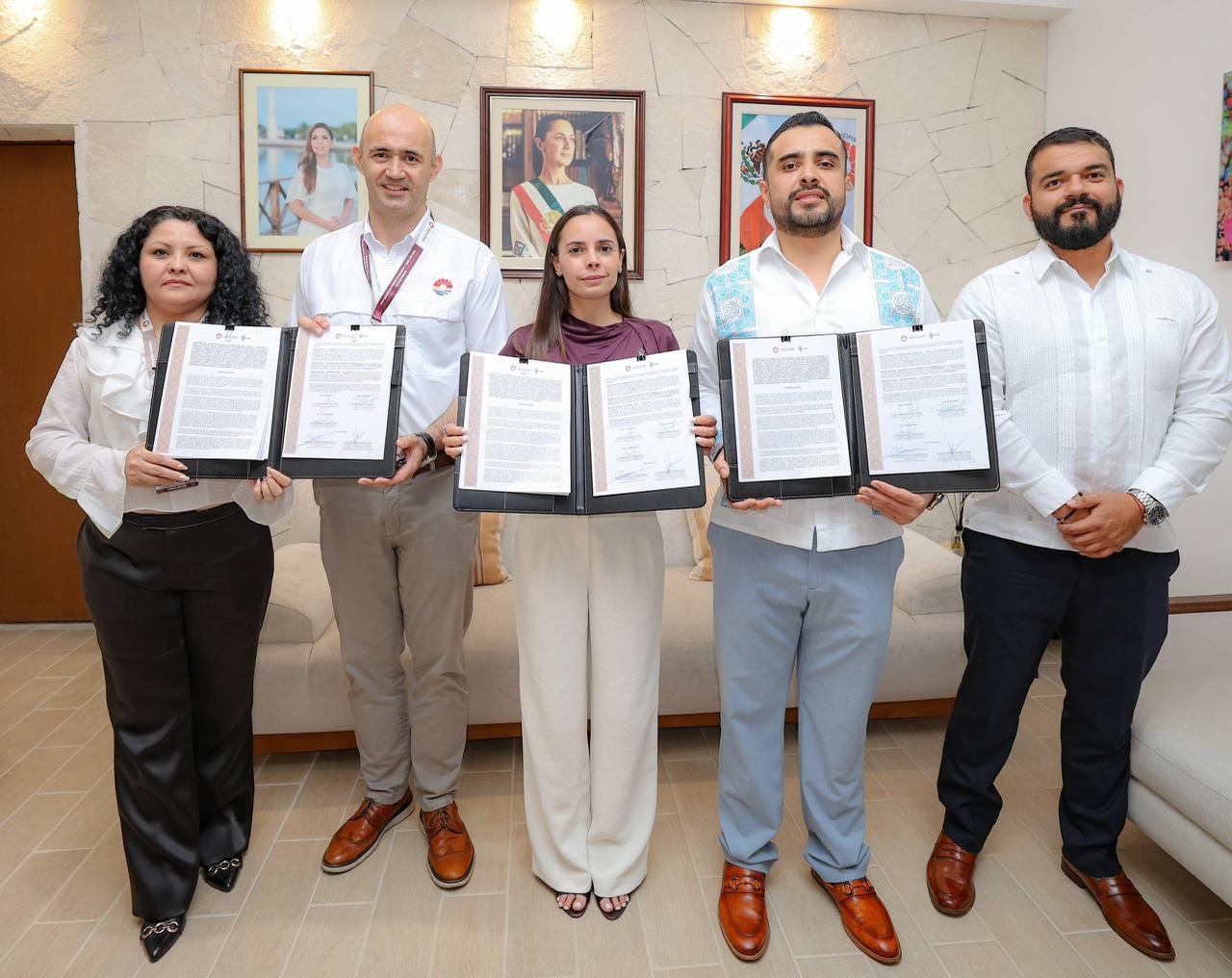 Posterior a la sesión Ana Paty Peralta; el Contralor del Municipio de Benito Juárez, Hilario Timoteo Gutiérrez Valasis; el titular de la Fiscalía Especializada en Combate a la Corrupción del Estado de Quintana Roo, Edgar Ramírez Morales; el titular de la Unidad de Investigación, Acusación y Proceso, Distrito Norte de la Fiscalía Especializada en Combate a la Corrupción del Estado de Quintana Roo, Carlos Alberto Castañeda Flores; y la directora de Investigación en Materia de Responsabilidades Administrativas, Karla Margarita Gutiérrez Encina, signaron el documento que oficializa la coordinación y el trabajo en equipo.